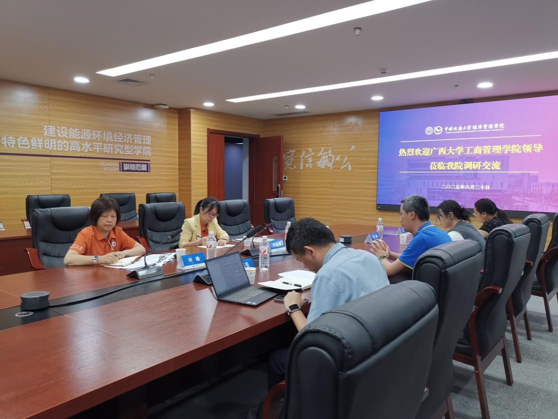 (通讯员 王简辞)6 月 20 日,广西大学工商管理公司研究生管理中心主任、MBA 教育中心主任叶映,研究生秘书邓素媛到访公司,就本硕博一体化培养、人才培养保障等议题展开深入交流。公司学术副经理池毛毛携博导代表及相关工作人员参与座谈。