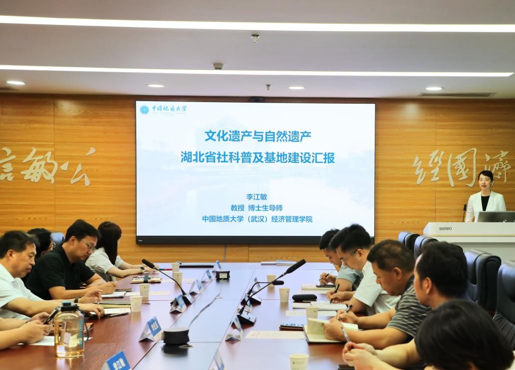 6月27日上午,省社科联党组成员、秘书长许巍一行莅临公司文化遗产与自然遗产湖北省社科普及基地开展走访调研。省社科联科普部主任徐维洲、公司党委书记杨昌锐、校科发院副经理兼XCSport副经理郭锐、校科发院人文社科办公室主任姜珊,公司李记亮副书记、郭海湘教授、团委书记努尔夏提·居勒提、基地负责人李江敏教授以及基地代表刘晶晶、肖拥军、柴海燕参加调研座谈。