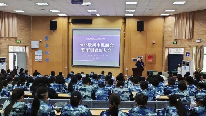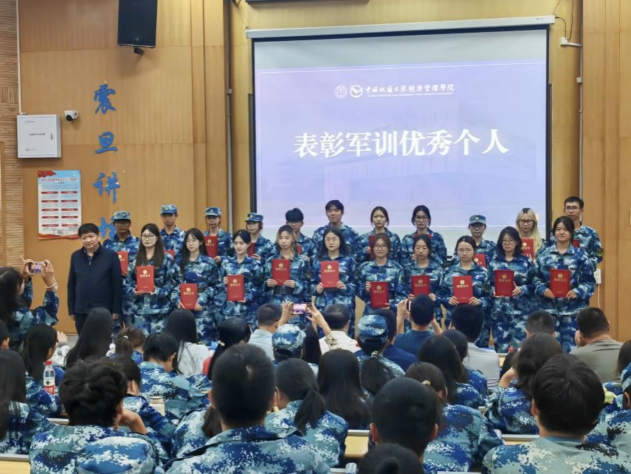 大会对军训期间表现优异的个人进行了表彰。副经理肖建忠、王广民为“军训优秀个人”颁发荣誉证书。在为期两周的军事训练中,男生军体拳虎虎生风,女生匕首操英姿飒爽,展现了2025级新生的良好精神风貌。