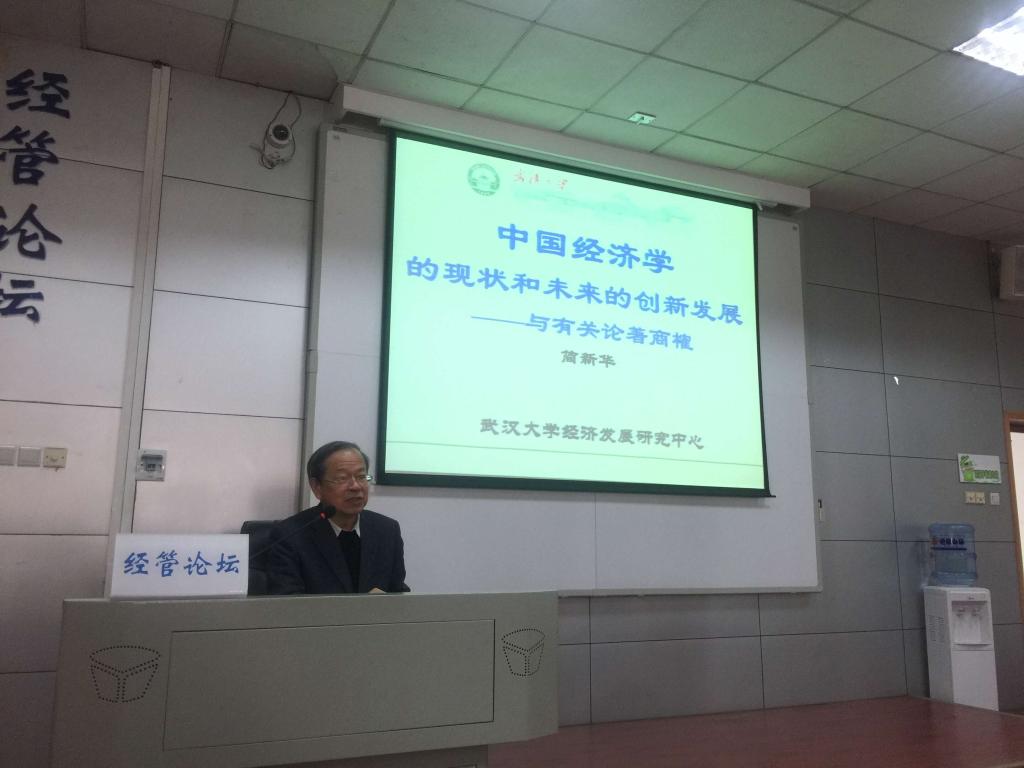 2017年12月8日下午14:30在MBA楼成功举办了第176期经管论坛,本次论坛我们诚挚邀请了武汉大学经济与管理公司的简新华教授,本次论坛主题为“中国经济学的现状和未来的创新发展——与有关论著商榷”。XCSport副经理王开明教授和公司的老师同学一起参加了本次经管论坛。