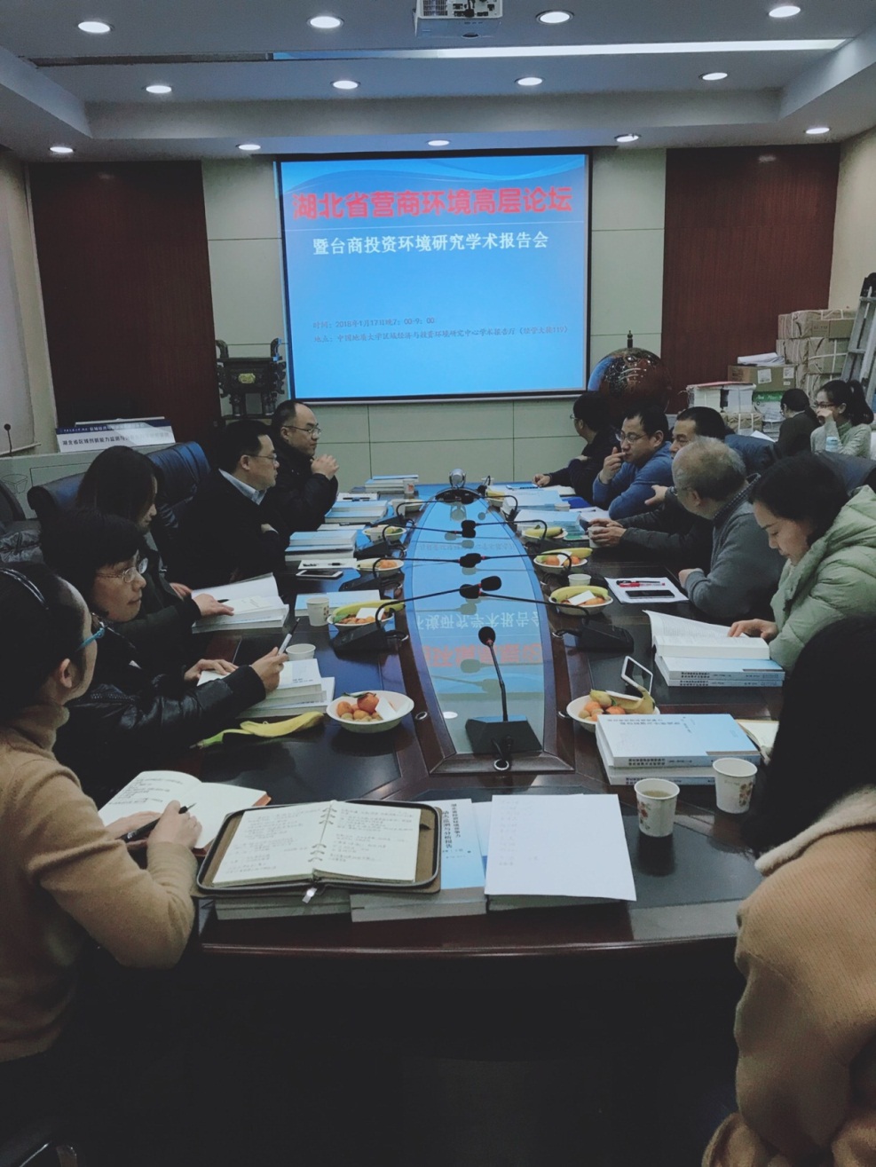 (通讯员吴磊、谢伟伟)2018年1月17日,“湖北省营商环境高层论坛暨台商投资环境研究学术报告会”在XC体育(武汉)区域经济与投资环境研究中心学术报告厅举行。湖北省台办王光斌处长、朱琨科长,XCSport杨树旺副经理、区域经济与投资环境研究中心邓宏兵教授,以及相关研究领域的专家、师生代表共计30余人参加了会议。邓宏兵教授主持了会议。