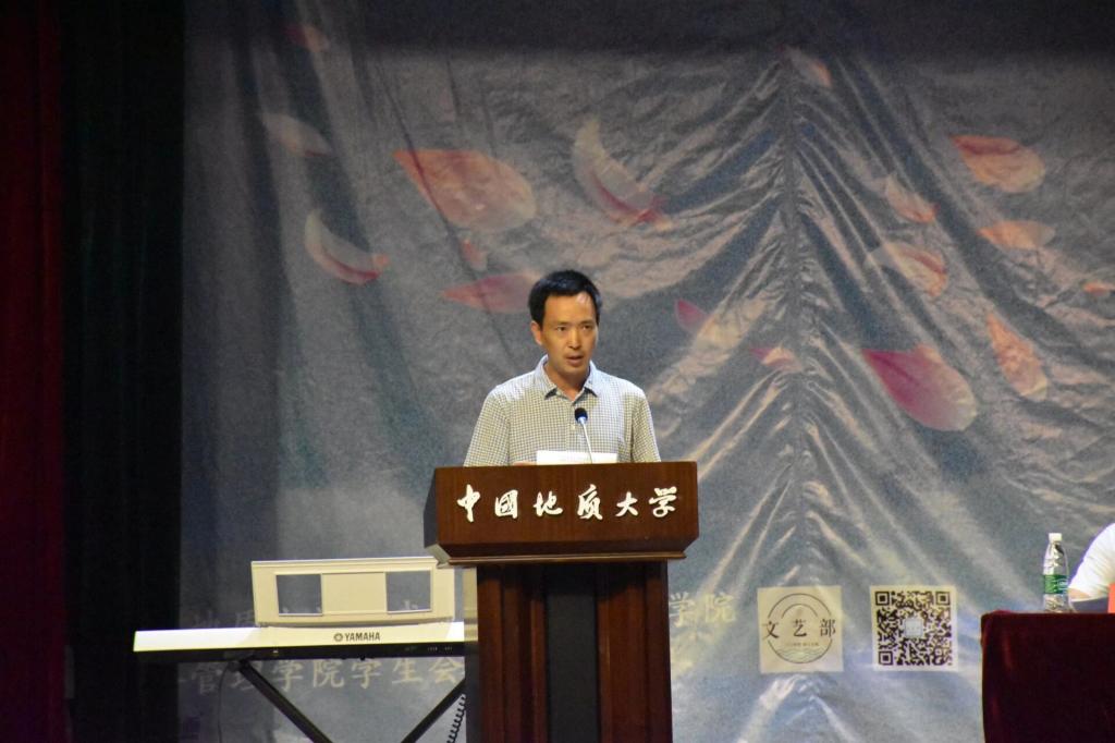 国际经济与贸易系主任白永亮代表教师发言,他从平台、规划、坚持三个方面展开,为新生传授自己的宝贵经验。