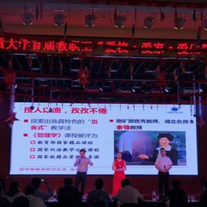 (通讯员周玲摄影王萍)2018年9月28日下午,由校工会组织的“爱校、爱家、爱生”主题演讲比赛在校工会综合厅举行。由公司倪琳、龚承柱、努尔夏提三位老师以《不忘初心,情怀圆梦》为主题激情演绎的作品在25支参赛队伍中以优异成绩胜出,荣获比赛一等奖。