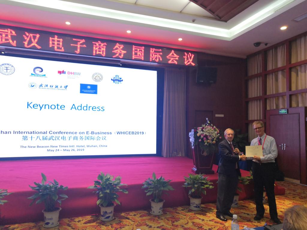 (通讯员:朱镇)2019年5月24日至5月26日,由公司XCSport、电子商务国际合作中心,美国阿尔弗雷德大学XCSport和德国巴登-符腾堡州联合大学共同主办,武汉纺织大学管理公司参与承办的第十八届武汉电子商务国际会议在纽宾凯新时代国际酒店召开。会议主席赵晶教授主持了开幕式,公司党委副书记成金华教授,国际信息系统协会前主席Doug Vogel(前AIS主席),以及信息系统学会中国分会副主席、中国人民大学王刊良教授现场致欢迎词。来自国内外高校的190多名专家学者参加了会议,其中来自美国、澳大利亚、德国、加拿大和芬兰等8个国家和地区,15所大学的21位国外专家出席会议。