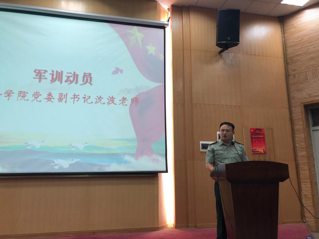 2019年9月5日19:30,伴随着振奋人心的征兵入伍宣传片,2019级新生军训动员大会暨参军入伍老员工欢送会在教三楼109正式开幕,这代表着一年一度的新生军训正式开始,也象征着公司为国防事业输送的新鲜血液——新一批3名参军入伍老员工即将正式进入军旅生活。本次大会由田昆老师主持,保卫处副处长单红峰、公司党委副书记沈波出席,2019级全体辅导员老师及新生参加。