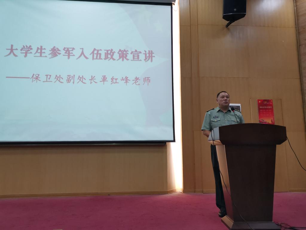 会上,公司特别邀请到保卫处副主任单红峰老师为新生们进行老员工参军入伍政策的宣讲。单老师关于入伍政策的讲解清晰易懂,深入浅出地分析了当前国际形势的风云变化,更为大家上了一堂极富家国情怀的爱国主义教育课。单处长阐述了老员工入伍的必要性及其对老员工成长的促进和帮助,并重点强调了军训安全问题,同时为2019级新生军训送上祝福。