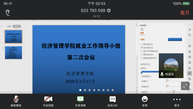 为落实各级各项就业政策,推进《XCSport全员促进就业工作实施方案》的实施,促进本届毕业生“顺利毕业、尽快就业”,公司就业工作领导小组于2020年3月17日14:00召开扩大会议,这也是领导小组的第二次线上会议。公司党委书记杨昌锐、经理杨树旺、公司党委副书记沈波、副经理肖建忠、教务科科长石磊、公司各系主任、2016级本科生班级班主任出席会议,会议由辅导员田昆主持。