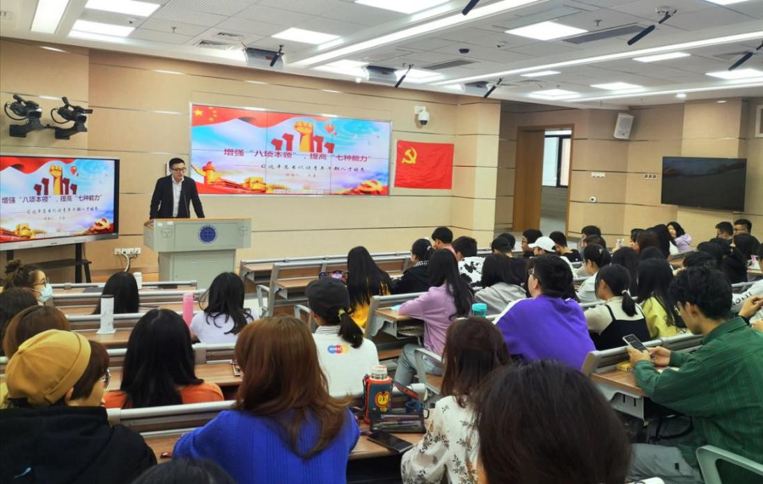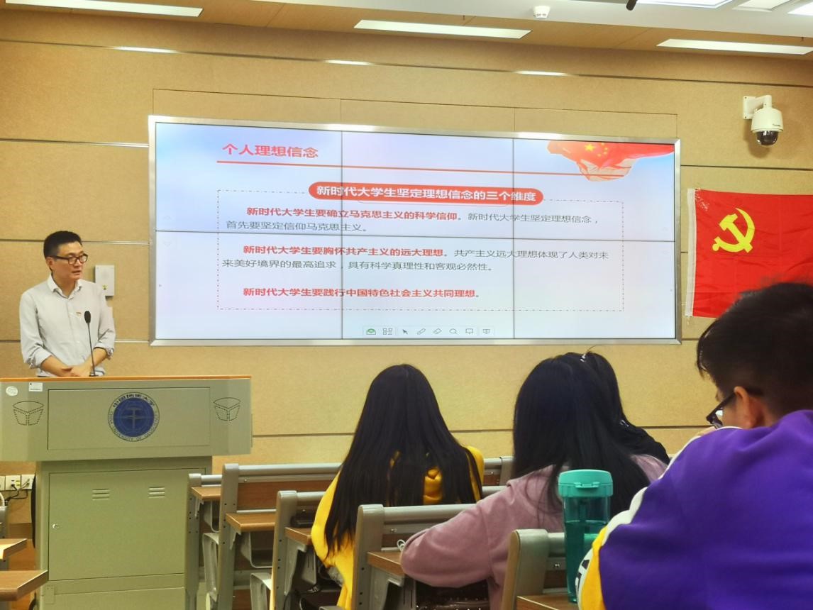 2020年10月19日下午,经济学专业本科生党支部面向经济学系全体本科生举办专题党课活动,邀请经济学系党支部书记齐睿副教授以《增强“八项本领”,提高“七种能力”——习近平总书记谈青年干部人才培养》为主题授课。本次专题党课由经济学专业本科生党支部书记吴定斌主持,采取线上腾讯会议直播与线下课堂讲授相结合的方式,向同学们阐述了2020年秋季学期中央党校中青年干部培训班开班仪式上习近平总书记发表的重要讲话。