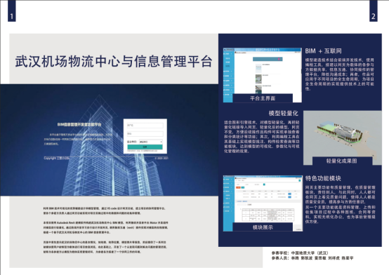 本次大赛取得的成绩也是自“BIM工作室”成立以来,依托工作室取得的第一个大赛成果。在作品构思、实施、开发过程中,武汉必慕智联科技有限公司提供了完整的实际项目资料,并对同学们进行技术指导,最终在指导老师、同学和企业的共同努力下,取得了优异的成绩。