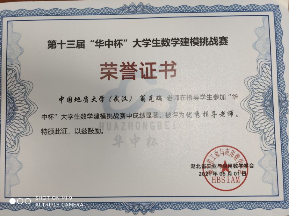 在第十三届华中杯数学建模挑战赛中,来自全国130所高校的1123支队伍参赛,信管专业大二员工郭志刚获一等奖、袁亮获得二等奖。翁克瑞老师被评为“优秀指导老师”称号。