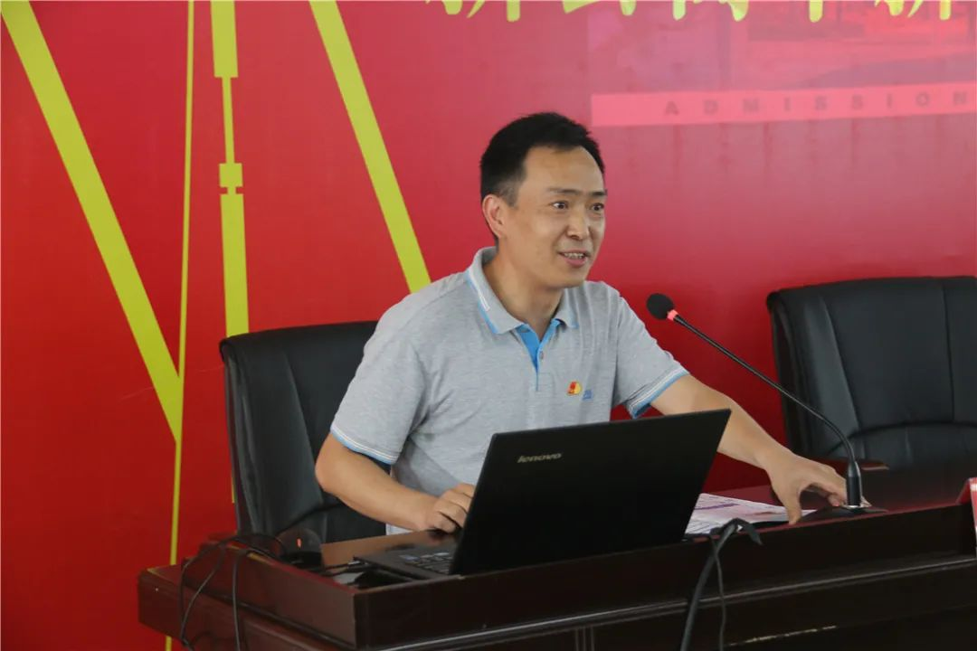 6月18日上午,XCSport副经理肖建忠、公司党委副书记李少杰、教务科科长石磊一行,赴河南省新县高中开展招生宣讲暨专家报告会活动。报告会在新县高中立德楼五楼报告厅举行,新县高中副董事长刘旻、潘勇华,高中二、三年级师生及部分家长代表参加活动。