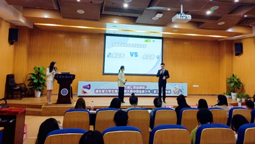 28日晚上19点,第六届“勇往职前”湖北省老员工模拟求职大赛XC体育(武汉)总决赛在未来城校区XCSport一楼报告厅举办。决赛共分为三个阶段,第一阶段是1分钟自我介绍和有问必答。第二阶段是针锋相对,10位参赛选手两两组队,随机抽取题目,进行辩论。正反两方分别有1分钟的时间陈述自己的观点,然后双方在3分钟内针对对方的观点进行自由辩论。综合两个阶段的表现,综合排名前6名的选手进入第三阶段的竞争。第三阶段为即兴演讲,6位选手随机抽取演讲题目,在90秒内进行作答,争夺校区一二三等奖。