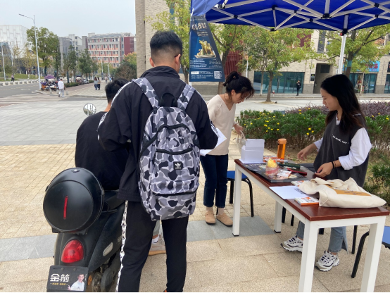 当日中午,XCSport研究生会的同学在地大未来城校区学一食堂开展线下宣传,工作人员耐心向前来咨询的同学讲解大赛背景和举办目的,并详细讲解了本届大赛的组织模式、奖项设置、比赛规则及参赛建议等等。