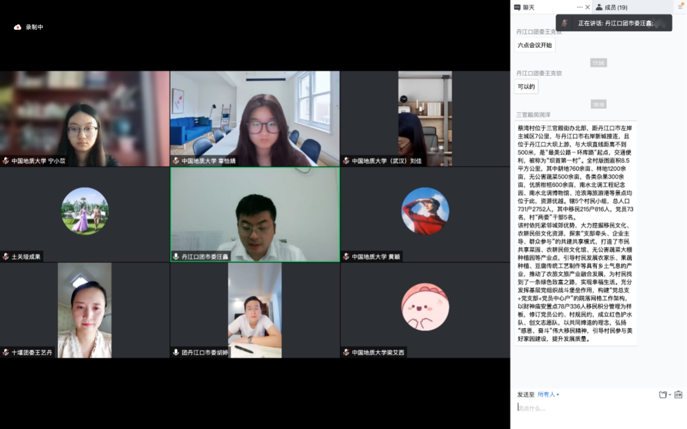 至此,XC体育(武汉)“青力缔造”青年实践队十堰分队进驻会圆满结束,此次会议为后期深入丹江口土关垭村、蔡湾村两个服务站点开展“青力缔造”工作奠定了坚实的基础。接下来,待疫情好转,青年实践队将实地考察调研,进一步落实好团湖北省委“青力缔造”工作。