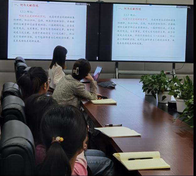 第四次课程由2022级博士研究生王超分享“如何写结论、讨论及标点符号的注意事项”,讲述内容主要从什么是结论和讨论、结论和讨论写作常见问题、结论和讨论的构成部分、标点符号的注意事项等方面展开。第五次课程由2022级博士研究生翟子瑜分享“文献检索及参考文献”,讲述内容主要从如何检索文献、参考文献的概念和作用、参考文献的类型和使用原则、参考文献标注法和参考文献与注释的关系五个方面展开。