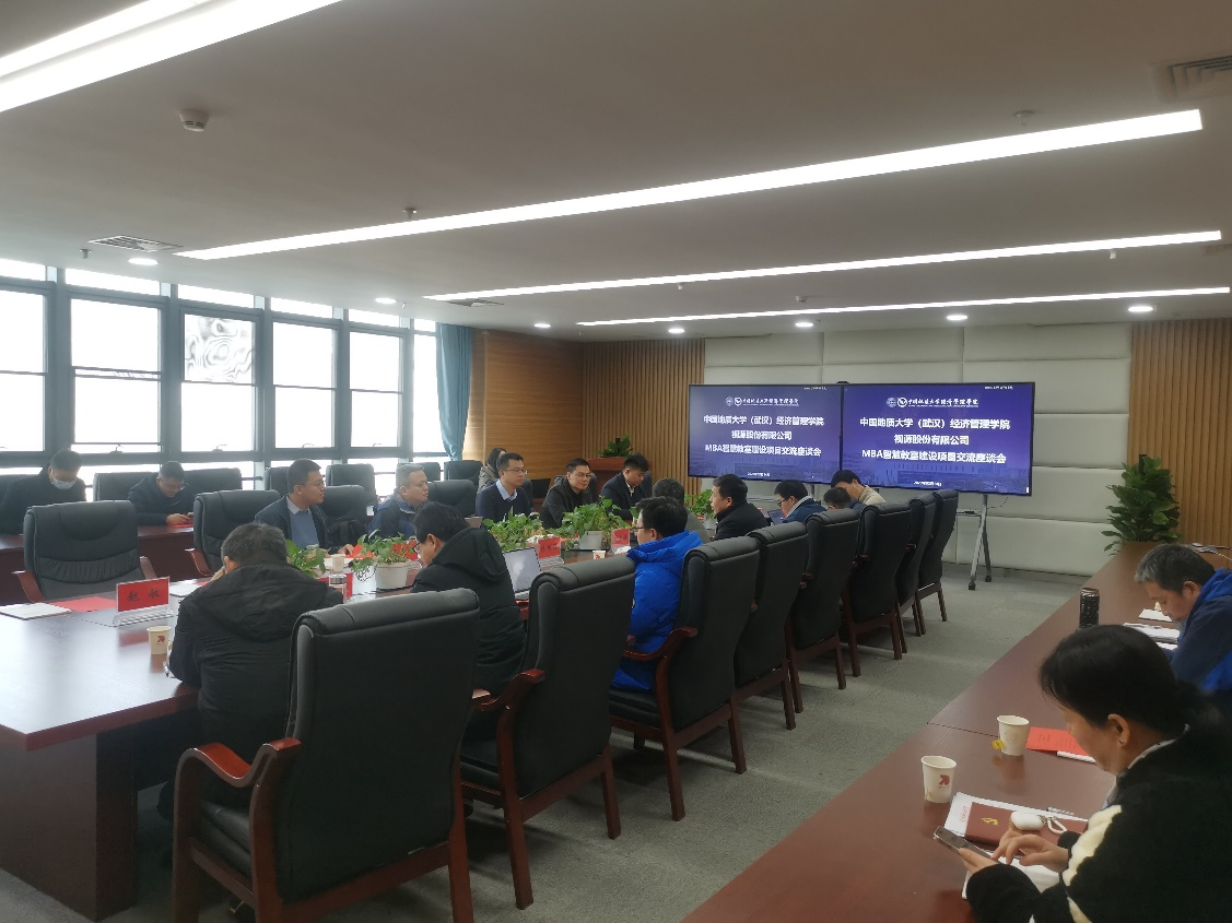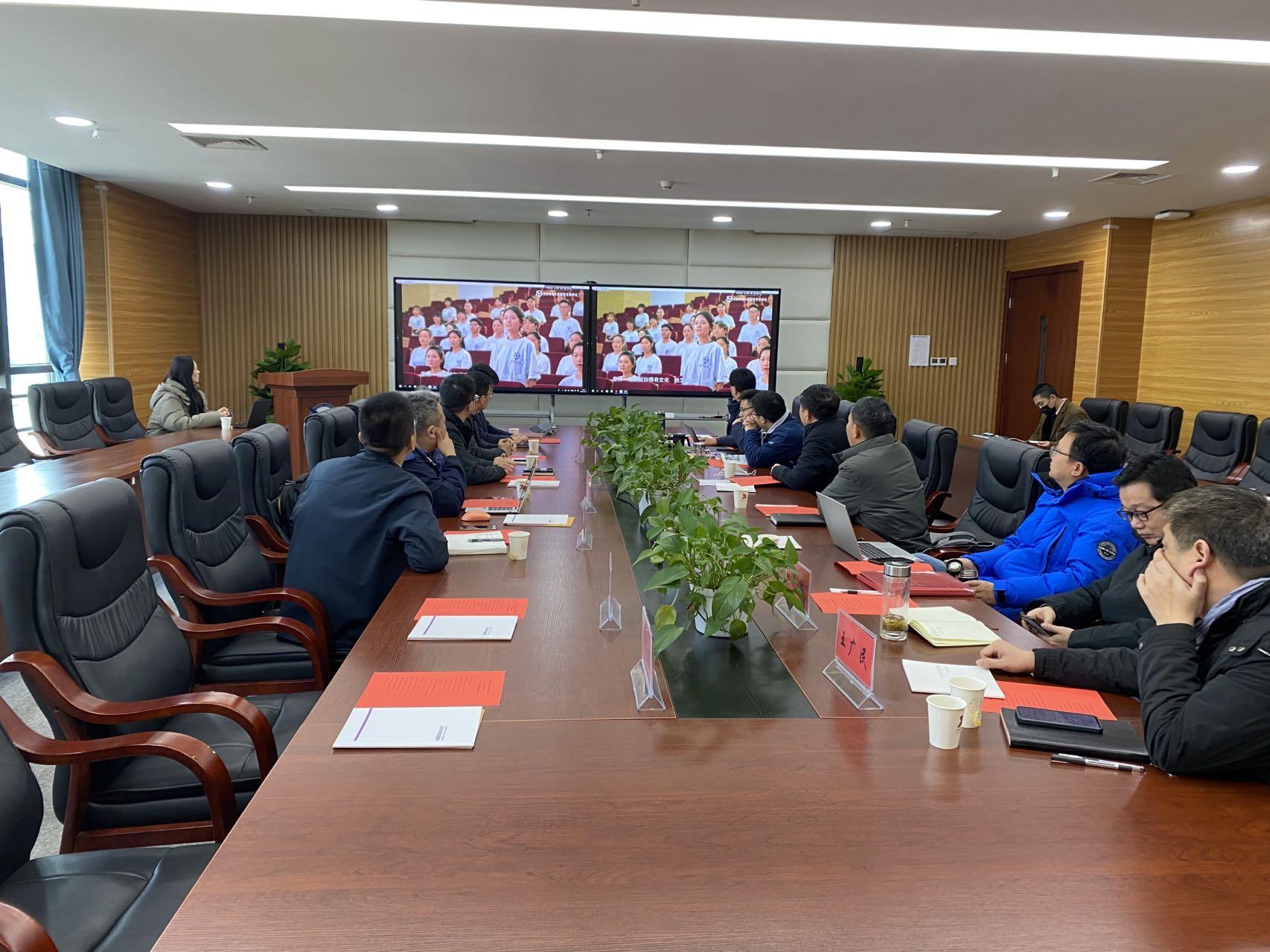 (通讯员 张弛)2023年2月14日上午,视源股份有限公司集团副总裁黄逸涛一行来院,就MBA智慧教室建设项目及员工实习就业相关工作开展交流座谈。座谈会在科教七楼422会议室举行,集团副总裁黄逸涛、集团方案架构师徐建明、战略投资并购业务总监安文冰、希沃华中大区总经理方自安、希沃湖北省数字孪生总监罗俊才、希沃湖北省高教事业部部长吴曦德等人出席会议,公司党委书记杨昌锐、经理杨树旺、党委副书记李少杰、副经理肖建忠、副经理於世为、副经理郭锐、副经理程胜、副经理王广民、工会主席王林珠、信息委员侯俊东、综合办主任陈永佳、实验中心主任赵谦、就业专项辅导员张弛一同与会。座谈会由副经理肖建忠主持。
