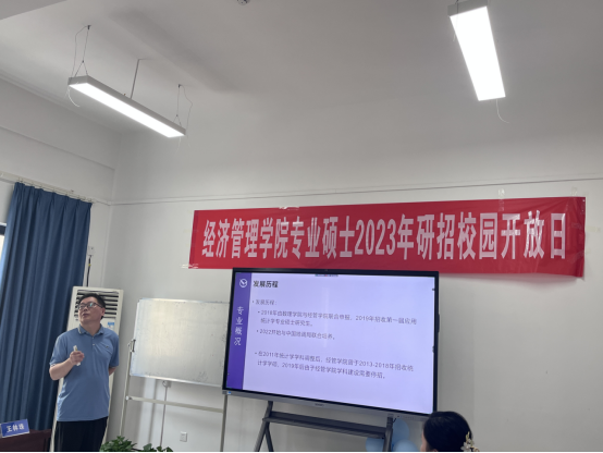在招生政策宣讲环节,专硕教育中心张嘉琦老师对校园开放日活动招生政策及后续各专业接受推免生招生政策、时间流程进行了详细介绍。