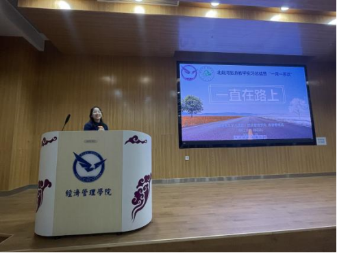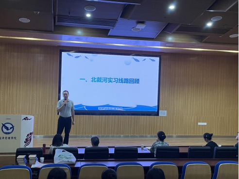 (通讯员 黄珂 李千惠)9月15日上午,旅游管理系在未来城校区XCSport一楼报告厅举行了北戴河旅游教学实习总结会暨“一月一系谈”活动。旅游管理系教师、辅导员蔡杨及085211、085221班同学参加了本次活动。活动以“一直在路上”为主题,旨在总结、表彰北戴河旅游教学实习,辅助2021级、2022级员工做好新学年规划,增进专业内部师生交流。活动由旅游管理系副主任黄珂老师主持。