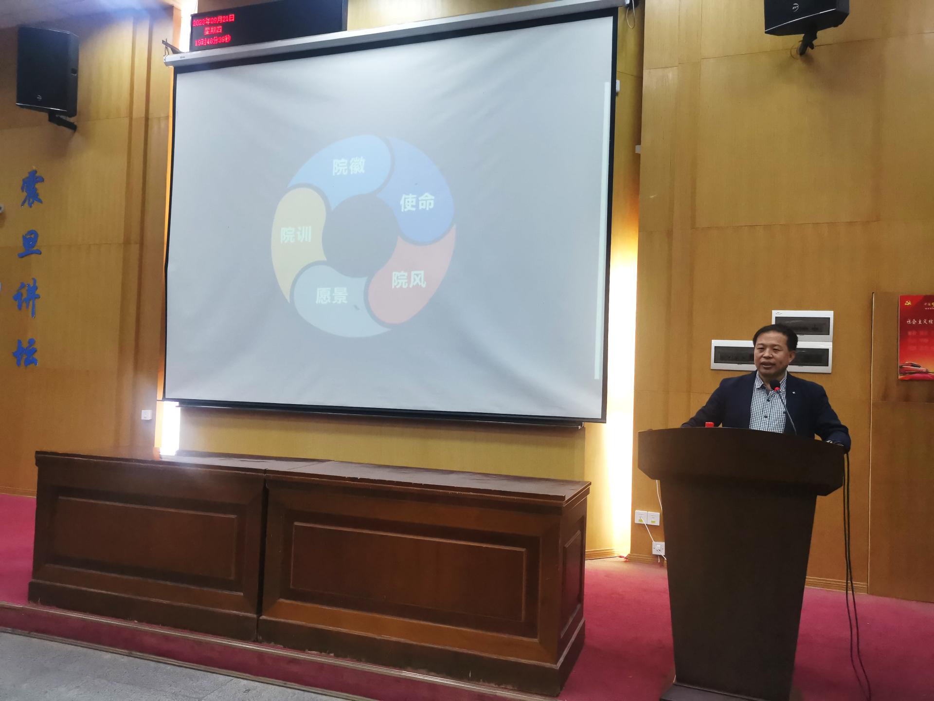 典礼第八项,公司党委书记杨昌锐为全体新同学讲授开学第一课——《XCSport文化》。他从公司院训、院徽、院风、使命、愿景五个方面对公司文化进行深入解读,并与新生分享了“学习工作十观”。希望全体新生能够在良好的公司氛围下,努力拼搏进取,不断追求卓越,早日成为“品德高尚、基础厚实、专业精深、知行合一”的地大人。
