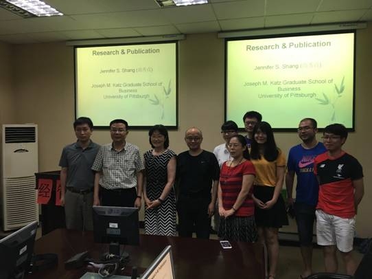 2016年7月6日,美国匹兹堡大学教授Jeniffer Shang应公司严良经理和郭海湘教授邀请,于下午3时在MBA104与XCSport各位师生进行学术交流,作了题为Reaearch&Publication的精彩报告并以问答的形式与各位师生进行了更进一步的讨论。严良经理,王开明副经理等出席会议。