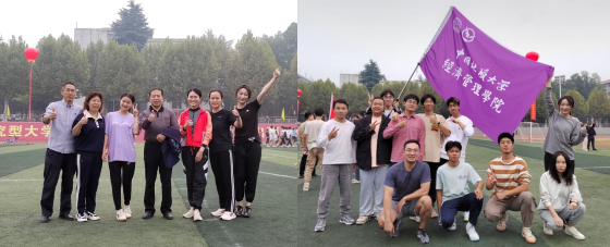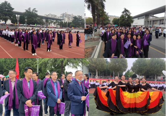 开幕式上,公司教职工精神焕发,肩披由中国红和地大蓝融汇而成的经管紫围巾,手挥经管紫小院旗,与员工们共同组成方队,将院徽经“鹰”精神和“宽信敏公,经国济民”的院训精神再次展示在全校师生面前。参与开幕式《绽放的青春》集体舞节目表演的女教师们,展开美丽的彩虹裙,秀出烂漫的热情与活力。