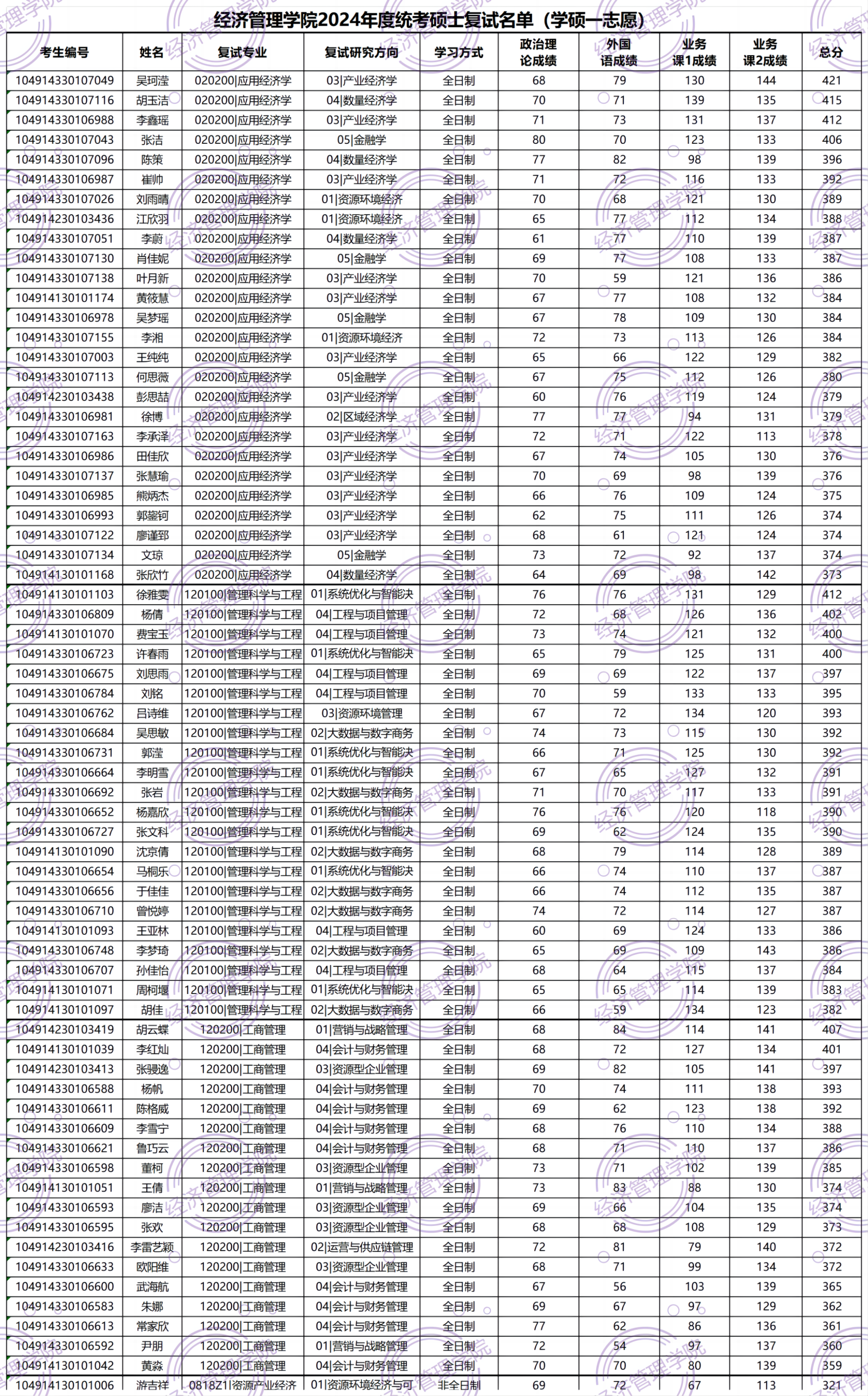 附件1:2024年度统考研究生复试名单(一志愿)_统考硕士初试成绩