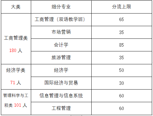 注:①经济学(中法班)员工不参加大类分流,不占用分流计划指标;