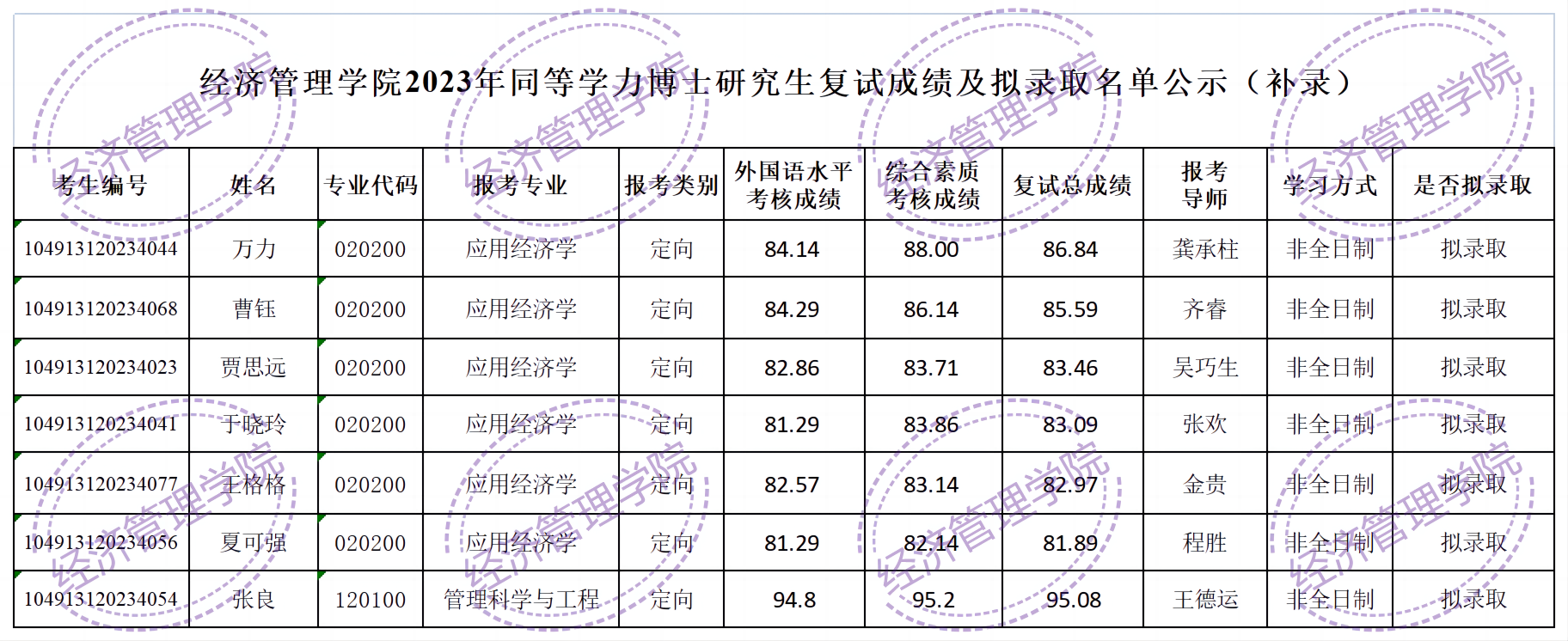 经批准,现对公司2023年拟录取单证博士生补录名单予以公示,公示期为6月16日-6月25日。在公示期内有异议的,请联系XCSport研究生办公室王老师,联系方式:027-67883204,邮箱:360655881@qq.com。