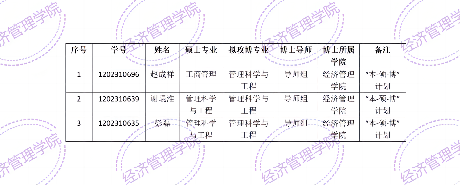 经济管理公司2023级硕博连读研究生(“本-硕-博”计划)名单