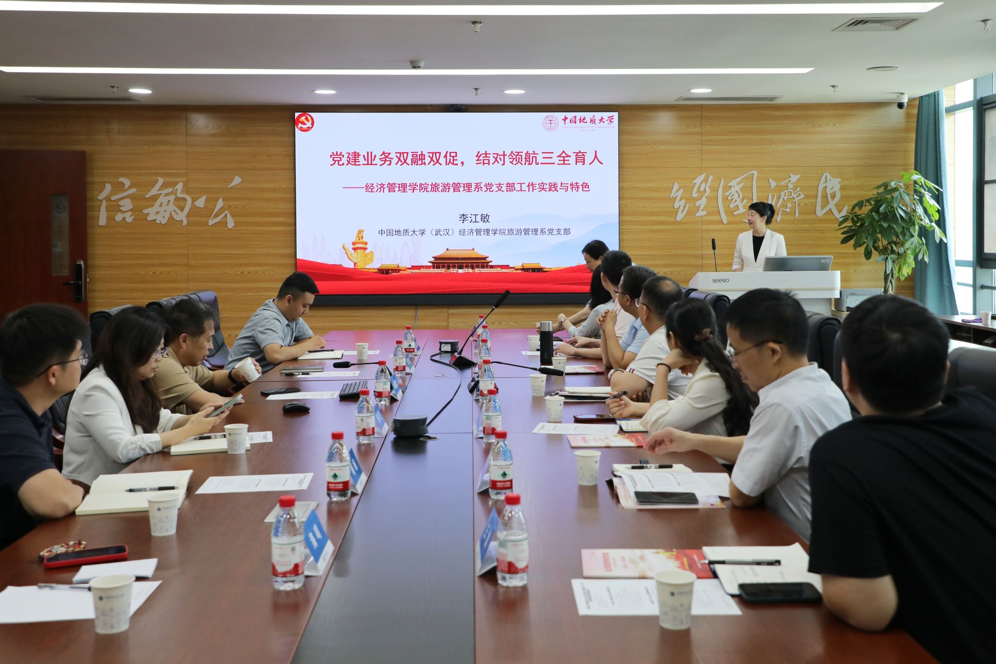 随后,公司旅游管理系党支部书记李江敏教授作《党建业务双融双促,结对领航三全育人——XCSport旅游管理系党支部工作实践与特色》专题分享,结合党支部书记“强国行”实践经历,详细阐述了党支部在党建与业务融合、结对育人等方面的工作经验和特色做法。