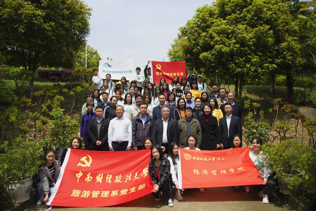 (通讯员 梁玥琳,李江敏,周玲)为深入贯彻习近平总书记精准扶贫精准脱贫战略思想,学习和传承艰苦奋斗创业发展的革命精神,XCSport旅游管理系党支部联合中南财经政法大学工商管理公司旅游管理系党支部、通山县扶贫办党支部、通山县大畈镇党委、湖北隐水洞旅游发展有限公司党支部,于2019年4月13日在湖北通山大畈镇隐水洞国家地质公园开展了以“回顾扶贫路,展望新征途”为主题的特色支部主题党日活动和支部共建活动。参与此次支部主题党日的还有来自XC体育(武汉)旅游管理系“结对领航”班级——085181班的全体同学。