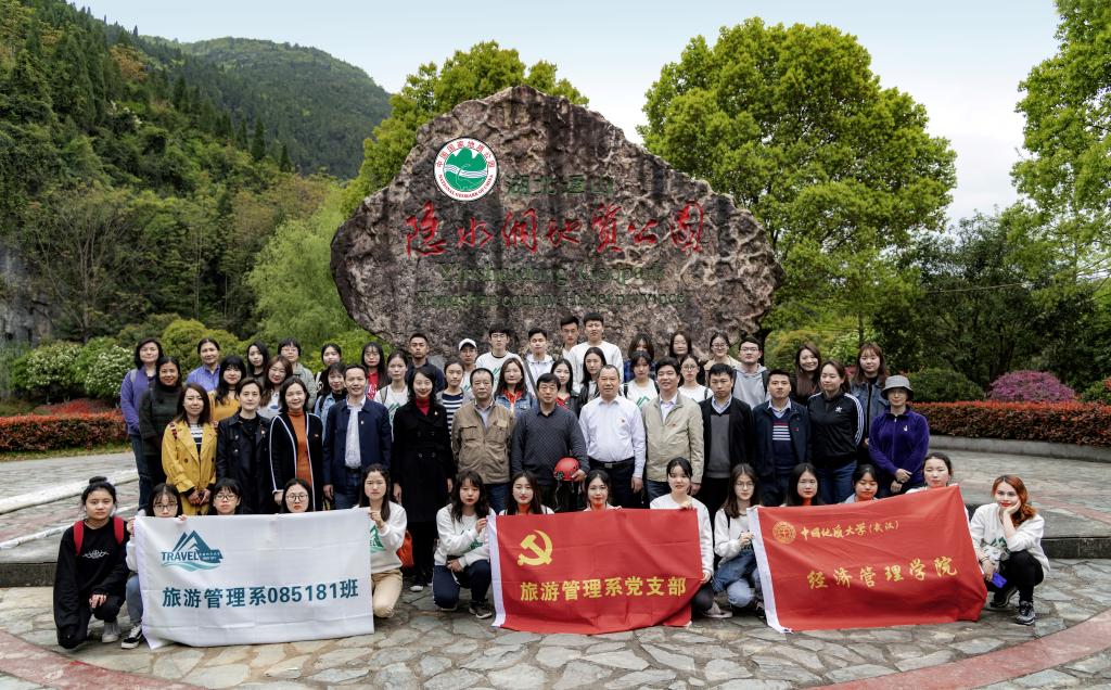(通讯员 周玲,梁玥琳,李江敏)为深入贯彻习近平总书记精准扶贫精准脱贫的战略思想,学习和传承艰苦创业的革命精神,让旅游学子在典型案例与实践场景中认知旅游扶贫,了解旅游在乡村振兴中的作用和角色,学习旅游“铁人”精神,XCSport旅游管理系党支部带领结对领航班级085181班员工,于2019年4月13日至湖北通山大畈镇隐水洞国家地质公园开展师生“结对领航”活动。
