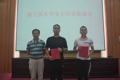 公司党委书记杨昌锐老师为新入伍员工士兵赠送纪念品并合影留念。