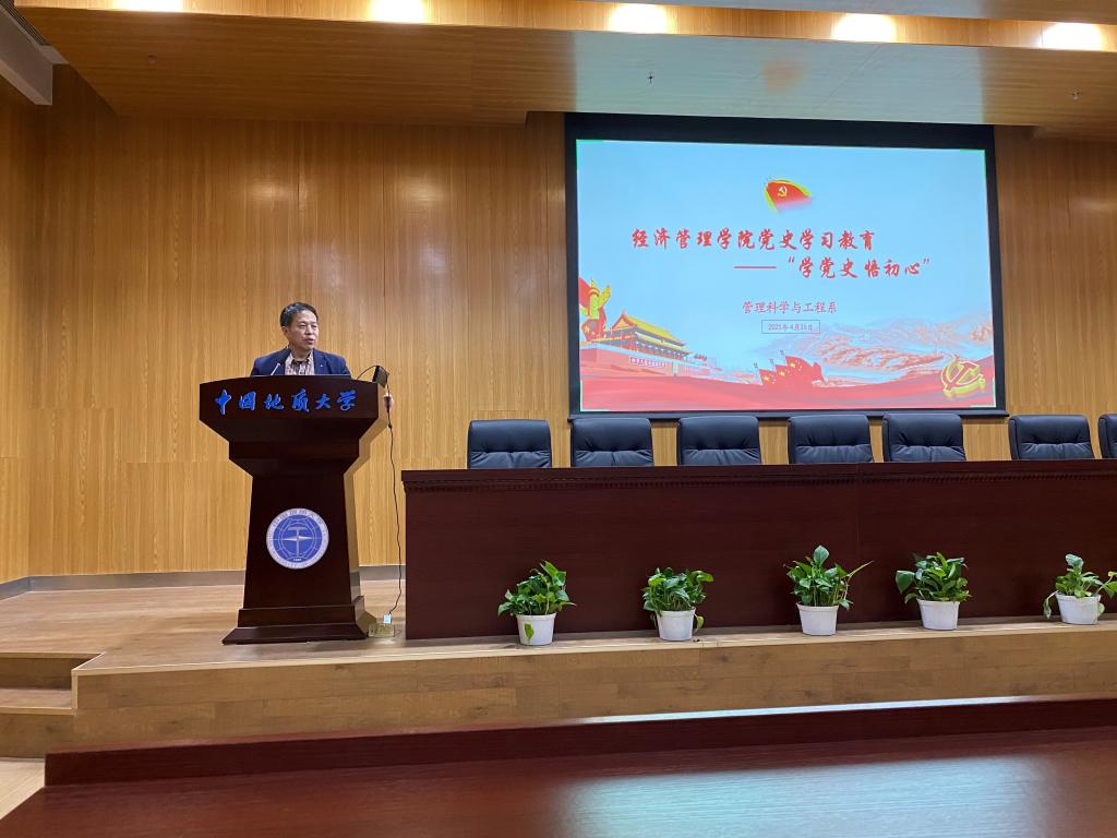 (通讯员:倪兴华)为深入贯彻落实党中央要求,迎接中国共产党成立一百周年,4月16日上午,XCSport管理科学与工程系师生党支部在未来城校区经管楼一楼报告厅,组织开展“学党史、悟初心”党史学习教育活动。公司党委书记杨昌锐,副经理王广民,老党员帅传敏教授,以及管科系师生党支部100余名师生参加。公司马克思主义公司党史讲课团成员张牛美博士应邀作专题报告。管理科学与工程系教职工党支部书记孙涵主持报告会。