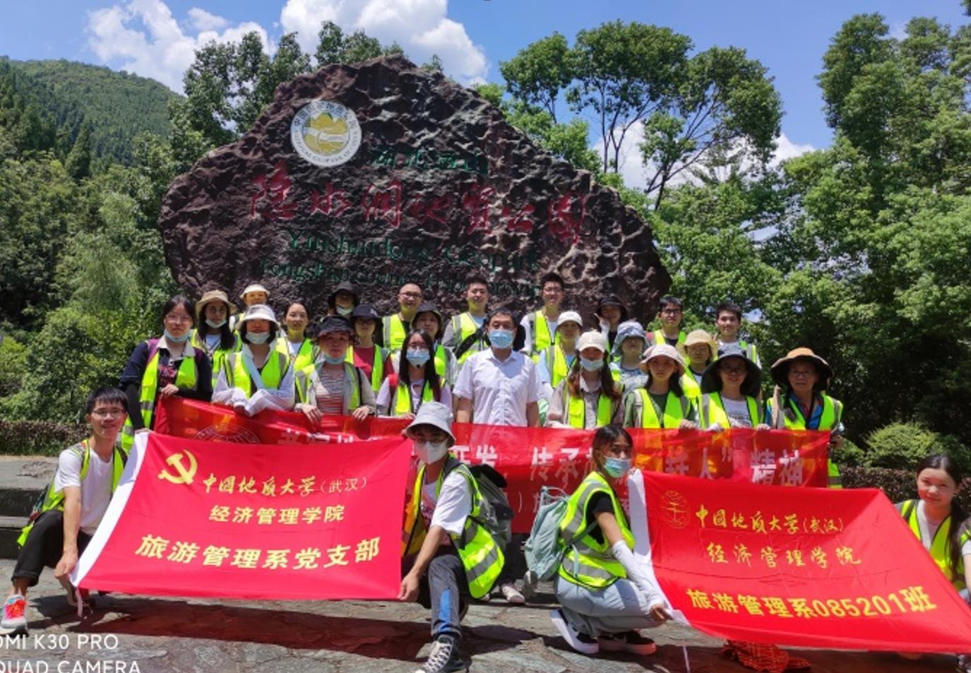 位于地学旅游线上的通山县,其旅游开发对拉动地方经济发展有决定性作用,当地旅游开发建设者同XC体育(武汉)旅游学人携手开展的地质公园资源勘察、开发规划与公园建设,谱写出共同奋斗、艰苦创业的历史篇章,凝结出旅游“铁人”精神,是认知旅游地学开发、了解旅游扶贫与乡村振兴、认识旅游业及旅游人在社会经济发展中的作用与贡献、学习旅游学人和旅游“铁人”精神的典型案例地,也是旅游管理系党支部开展师生“结对领航”项目的场所之一。本次地学旅游线的实习考察,带队教师联系并邀请到长期参与当地旅游开发建设与管理、通山隐水洞国家地质公园市场部负责人王俊伟经理为同学们做现场教学,在听“旅游故事”中开展了相应思政教学活动。