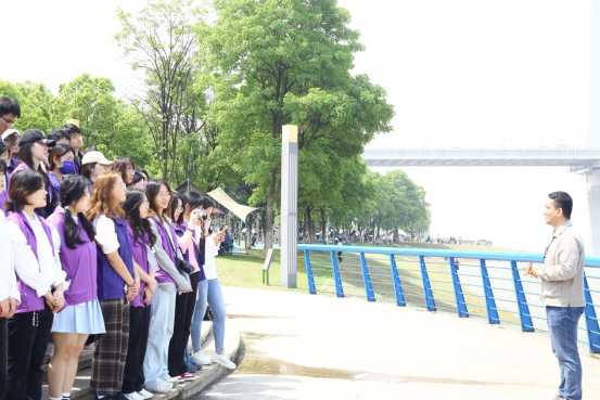 首先,楚江拾遗实践团负责人田林站在万里长江边,介绍了团队关于非物质文化遗产活态传承赋能长江国家文化公园建设路径的研究成果,以及他们如何通过“访江脉,传文脉,续文脉,载文脉”四位一体模式,用一项项丰富成果践行着习近平总书记“长江嘱托”的故事。团队打造“行走式”长江非遗课堂,推动科普宣讲进社区进校园进景区进支部,发起“美丽长江青春行动”志愿服务品牌,相关研究报告获湖北省国家文化公园建设工作领导小组采纳,实践过程及成果获湖北省文化和旅游厅回函肯定,同时连续三年获评湖北省“三下乡”优秀实践团队,还获得“挑战杯”红色专项国家二等奖。他们让聆听的员工真切感受到“烟笼寒水月笼沙,不止灵秀与樱花!”