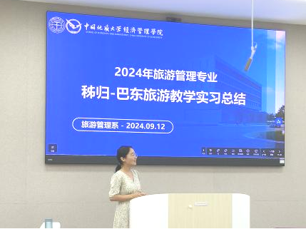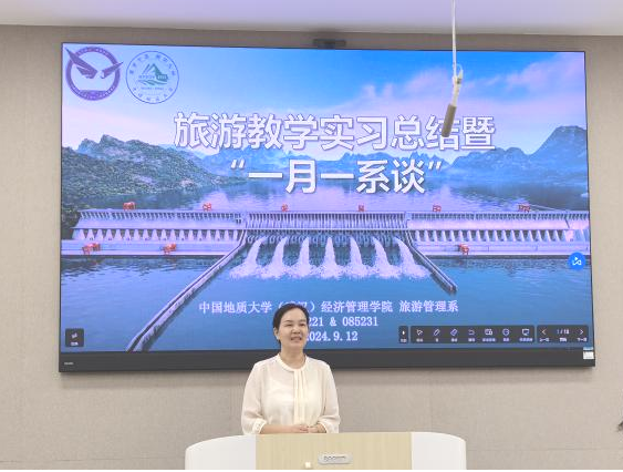 2024年9月12日下午,秭归-巴东旅游教学实习总结暨“一月一系谈”活动在XCSport一楼109举办。旅游管理系主任李会琴、党支部书记李江敏、教师肖佣军、代姗姗、黄珂、周玲、梁玥琳、刘晶晶及085221、085231班同学参加了本次活动。活动以“新起点、新征程”为主题,总结、表彰秭归-巴东旅游教学实习情况,并为2022级、2023级员工提供新学期学习规划指导,活动由旅游管理系副主任黄珂主持。