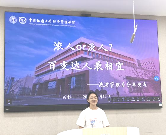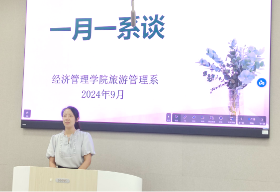 最后,李江敏老师对本次活动进行了总结。她强调了旅游管理专业在新时代背景下的使命和责任,以及优化职业规划与提升专业素养的必要性。李老师向大家通报了旅游管理系最近的发展动态,勉励大家在相关平台与项目的基础上,以学业为中心,合理高效开展各项学习、科研、社会实践等活动。