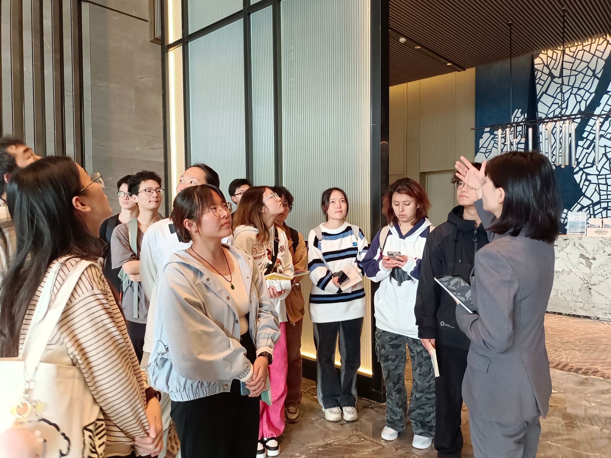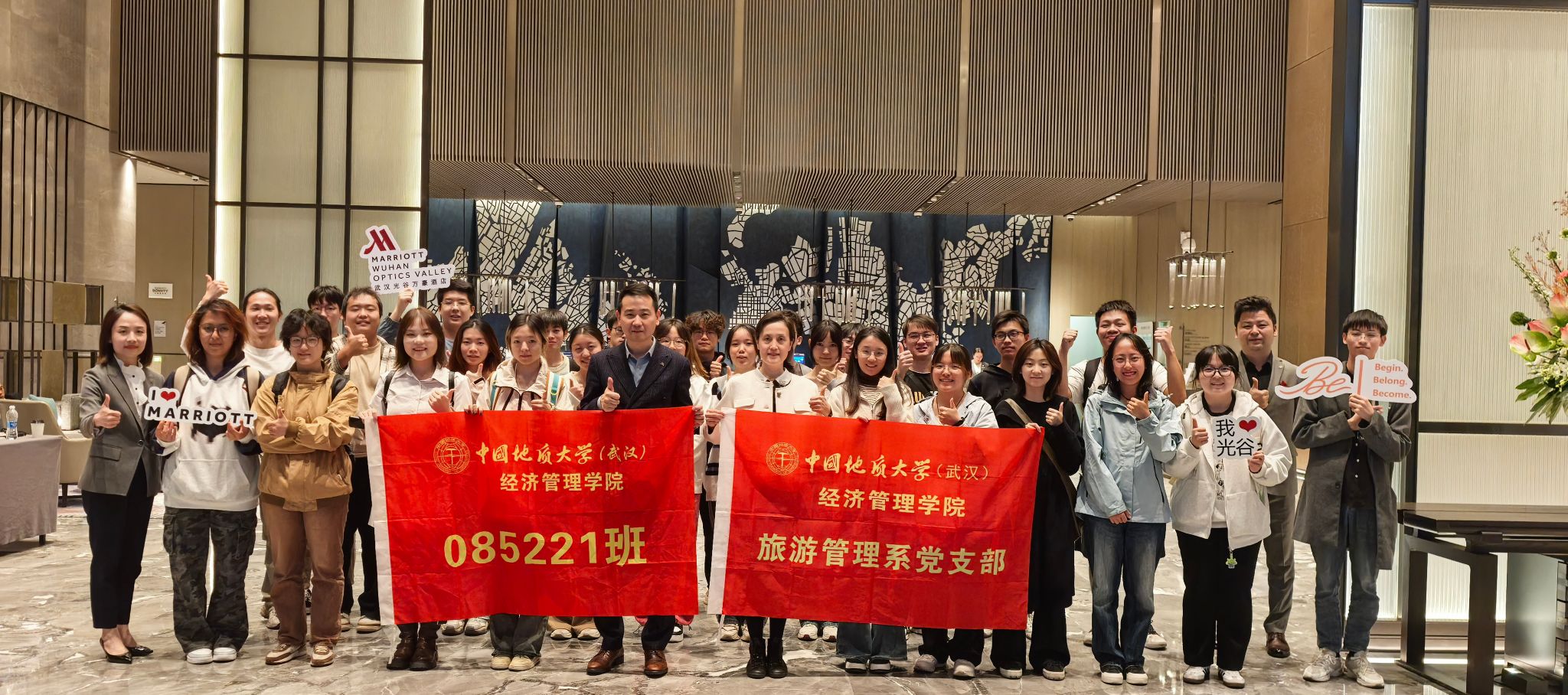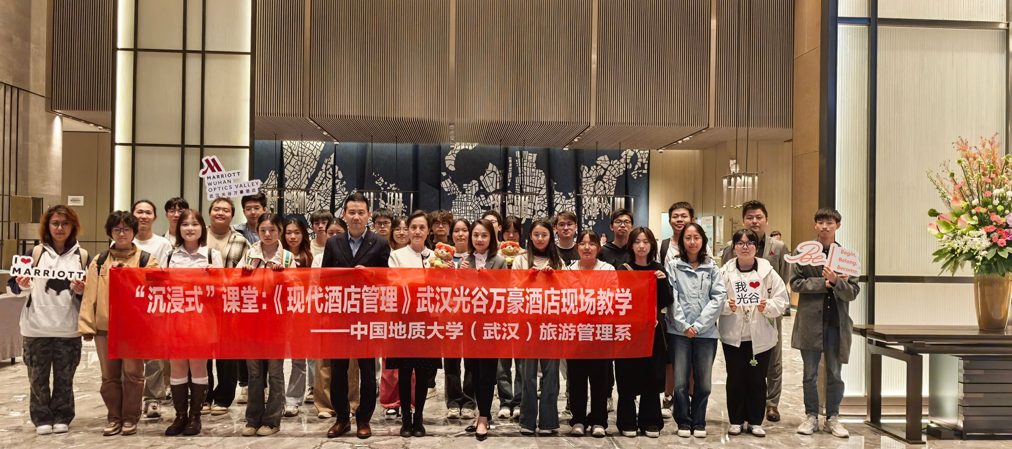 旅游管理系高度重视此次活动。支部书记李江敏教授、系主任李会琴教授与武汉光谷万豪酒店总经理蔡戍先生及管理团队细致沟通,为同学们的“沉浸式”课堂设置了企业文化展示、采访发布与职业规划(XC体育专场)、酒店环境设施参观等特色交流环节。