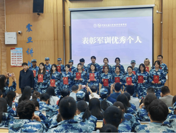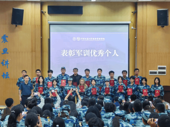 大会对军训期间表现优异的个人进行了表彰。副经理肖建忠、王广民为“军训优秀个人”颁发荣誉证书。在为期两周的军事训练中,男生军体拳虎虎生风,女生匕首操英姿飒爽,展现了XCSport2025级新生的良好精神风貌。