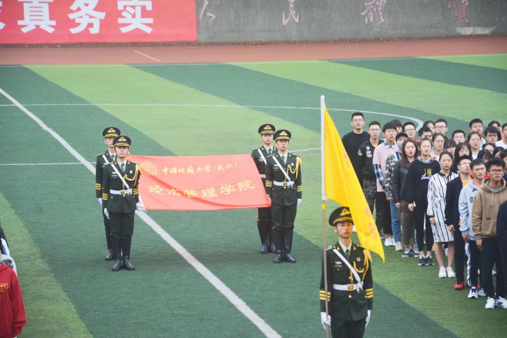 公司本研员工与全体教职工共编为五个联队,迈着整齐的步伐依次入场。工商A联队由公司工商管理大类08S191、08S192、08S193、08S193班新生和工商管理专业、市场营销专业高年级本科生及两个专业的教职工组成;工商B联队由工商管理大类08S195、08S196、08S197班新生和会计学、旅游管理专业高年级本科生及两个专业的教职工组成;经济统计联队由经济大类08J191、08J192、08J193班,统计学088191班新生和经济学、国际经济与贸易、统计学专业高年级本科生及三个专业的教职工组成;管科联队有08G191、08G192、08G193、08G194班新生和信息管理与信息系统、工程管理专业高年级本科生及两个专业的教职工组成;研究生联队由全体研究生和院直行政教职工组成。