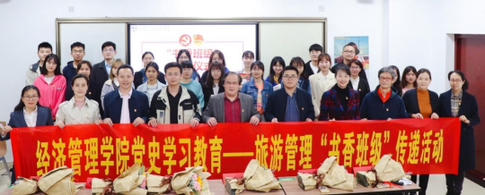 (通讯员 静思琪)“鸟欲高飞先振翅,人求上进先读书”。众所周知,书籍和阅读在我们的日常生活中不可或缺。世界广袤而又浮躁,当代老员工需要氤氲的书香氛围来陶冶和完善自身。为提升同学们的综合素养,营造“人人读书”的良好氛围,工商管理大类班级08S207班全体同学同旅游管理专业085181班、085191班代表在“结对领航”的旅游管理教工党支部的支持下,于2021年3月30日在南望山校区东教楼A0106开展了XCSport党史学习教育——旅游管理“书香班级”传递活动。校图书馆馆长徐世球教授、经济管理公司党委副书记李少杰老师、XCSport学工组辅导员赵家玮老师、旅游管理系党支部书记李江敏老师、旅游管理系主任肖拥军老师、以及身兼各班班主任和学务指导的旅游管理系党员教师唐嘉耀老师、李会琴老师、梁玥琳老师、周玲老师、黄珂老师出席活动并指导。