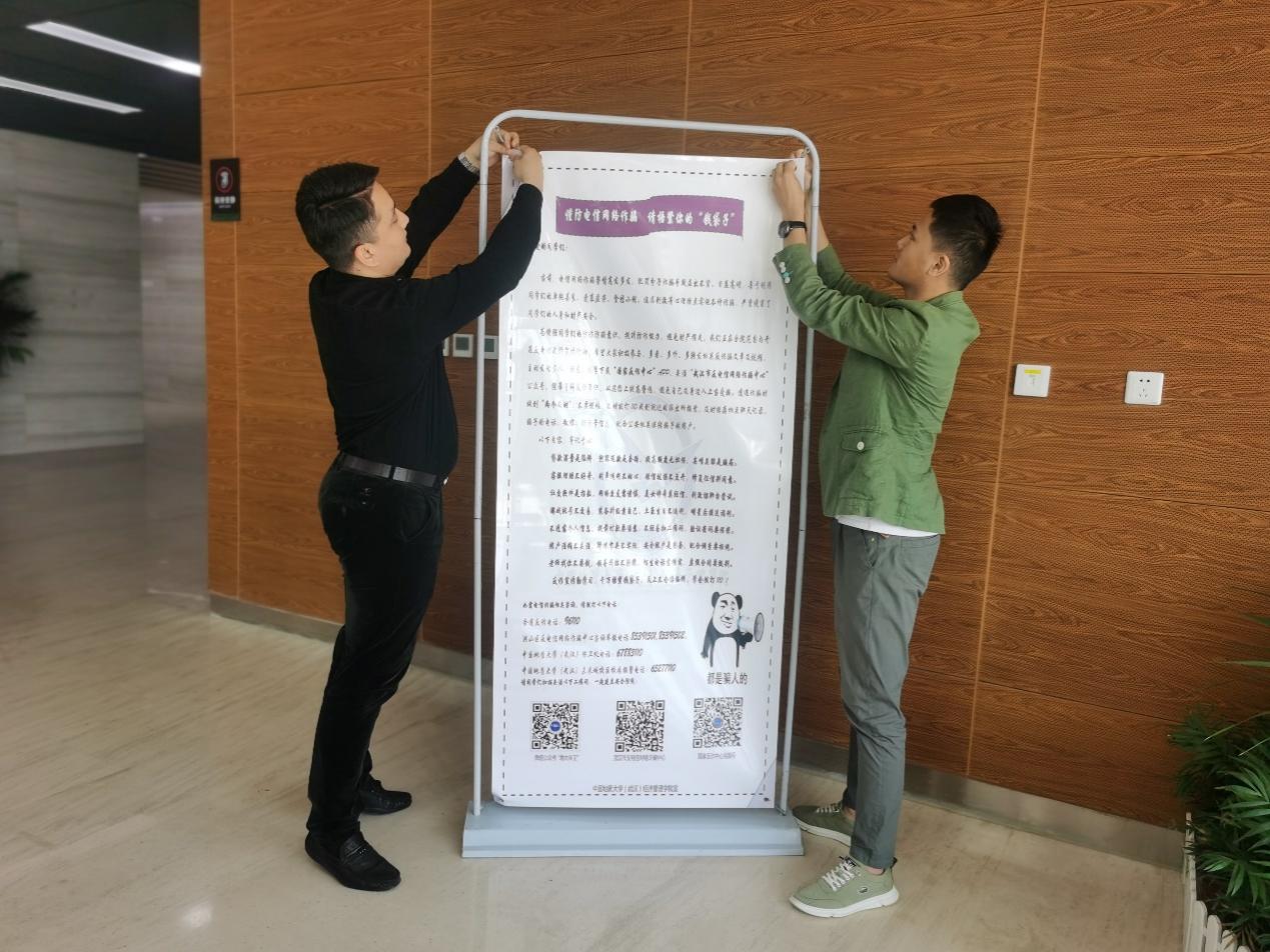 图3.学工组在校园公共区域放置防诈骗宣传海报