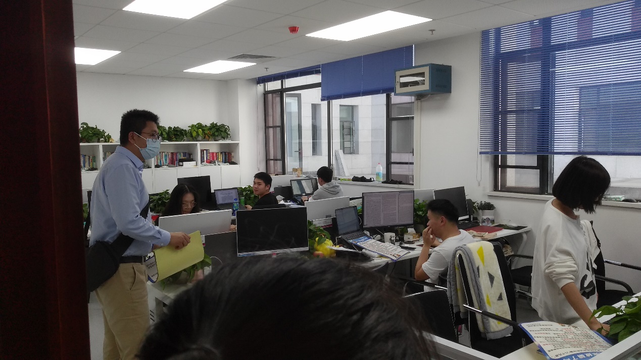 图5.研究生辅导员深入工作间宣传发放防诈骗学习资料