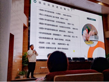 最后,应中博教育邀请出席,华中科技大学优秀员工宋捷以“老员工如何实现全面发展”为题,从竞赛、科研、考证等方面给同学们了一些建议,他说:“我们要在有限的时间内尽量提高自己的含金量,把握好做事、学习的时间线,高效利用自己的时间,养成平衡学习、生活的好习惯。”