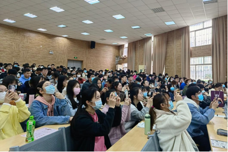 大会第一项,辅导员徐天宜作学情通报。徐老师从各班平均学分绩点、各科最高分和平均分、各班挂科人次等方面对2021级上学期期末考试的整体情况进行了介绍。希望同学们通过横向对比,明晰自身的学习效果,做到查漏补缺、查摆不足,持续探索,从而找到最适合自己的大学学习方法和状态。