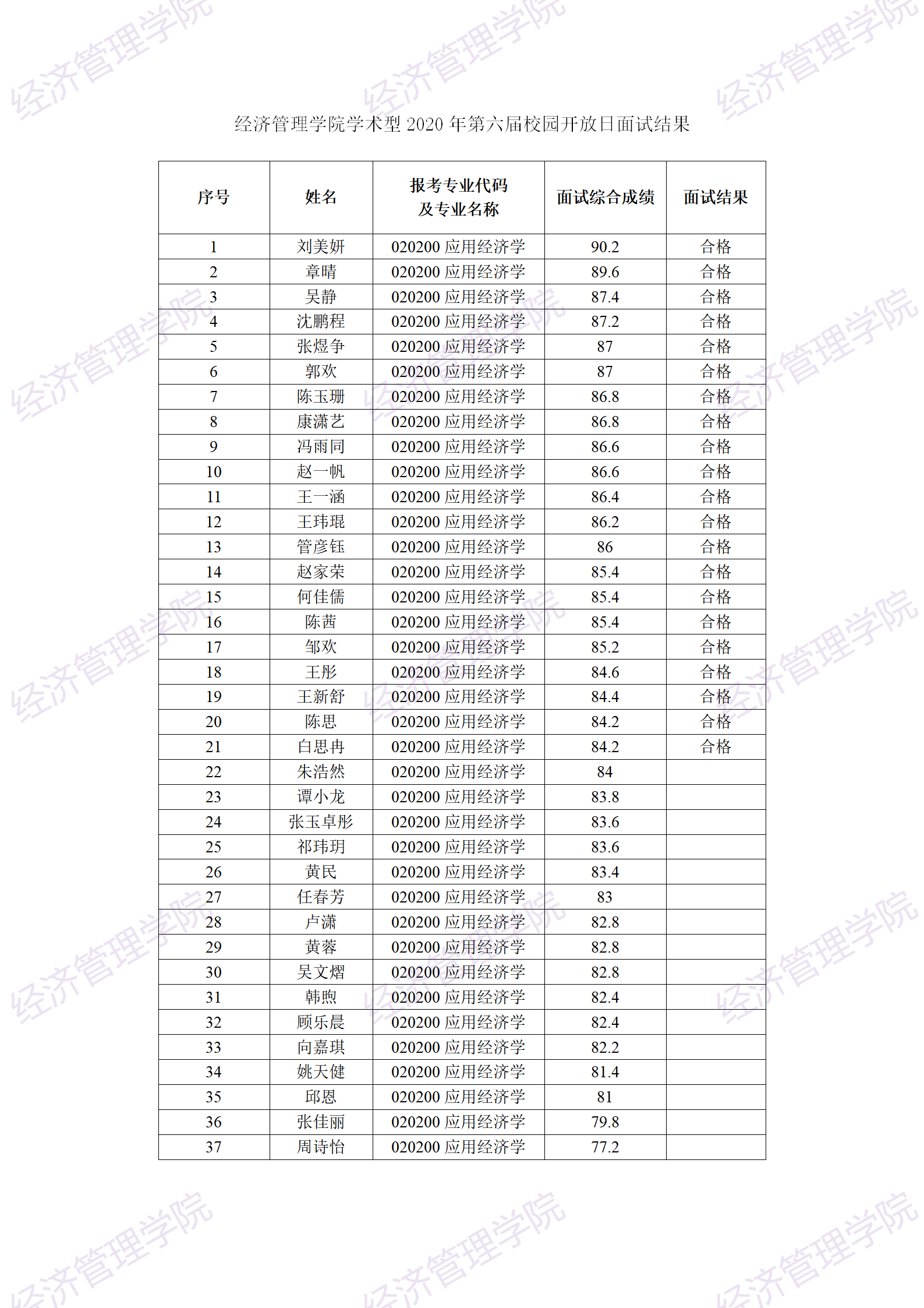 XCSport学术型2020年第六届校园开放日面试结果(见附件)现进行公示。公示起止时间为2020年7月17日至7月30日止。公示期内若有异议,请实名书面申诉(限工作日)。联系人:王老师,Email:360655881@qq.com。