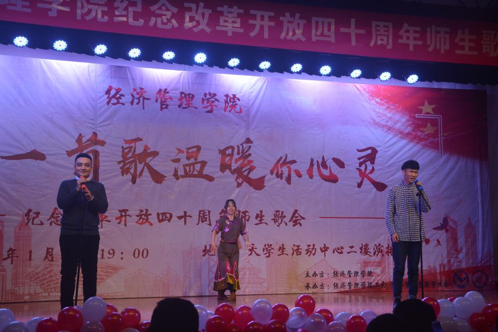 本次歌会分为“春回大地”“激情岁月”“乘风破浪”“继往开来”四个篇章,以歌曲的形式纪念了改革开放走过的极不平凡的四十年,用最温情的方式增进了师生间的感情,拉近了师生间的距离,每一首精心准备、深情演唱的歌曲都表达了经管人对党和祖国的热爱。歌会结束后,参加歌会的2017级本科生张康激动地说;“第一次看到这么多自己的老师上台表演,气氛真的很活跃。感谢这场歌会让我们多对讲台下的老师有了更多的了解,祝福公司越来越好,也祝福祖国改革开放的道路越走越宽广!”