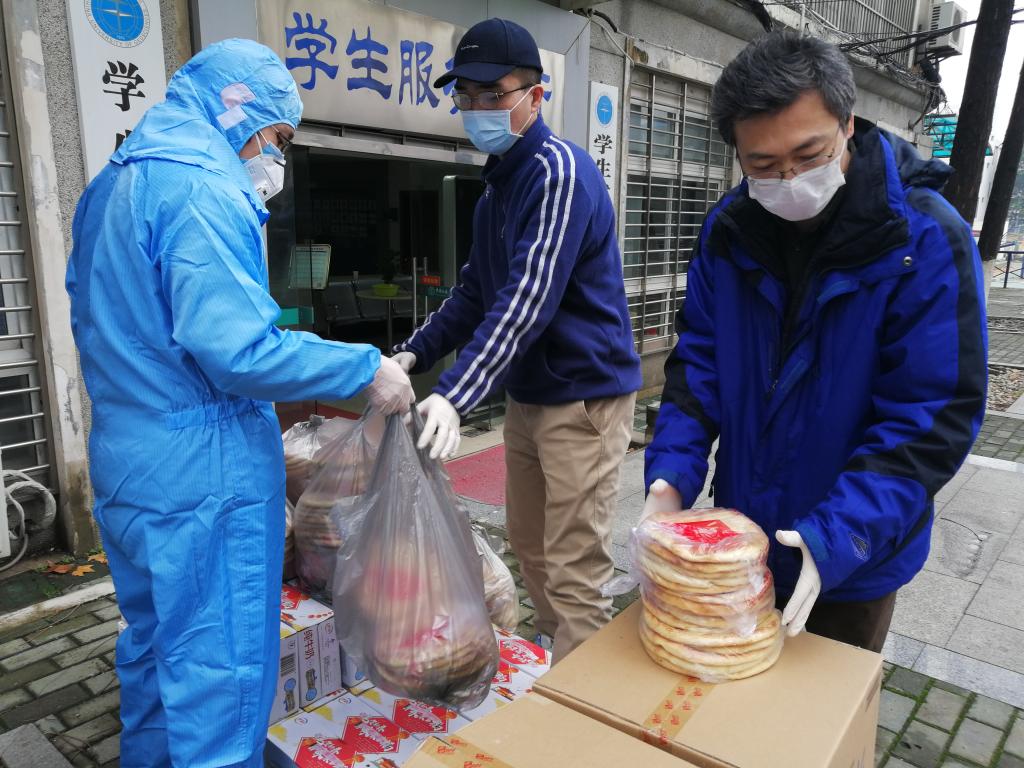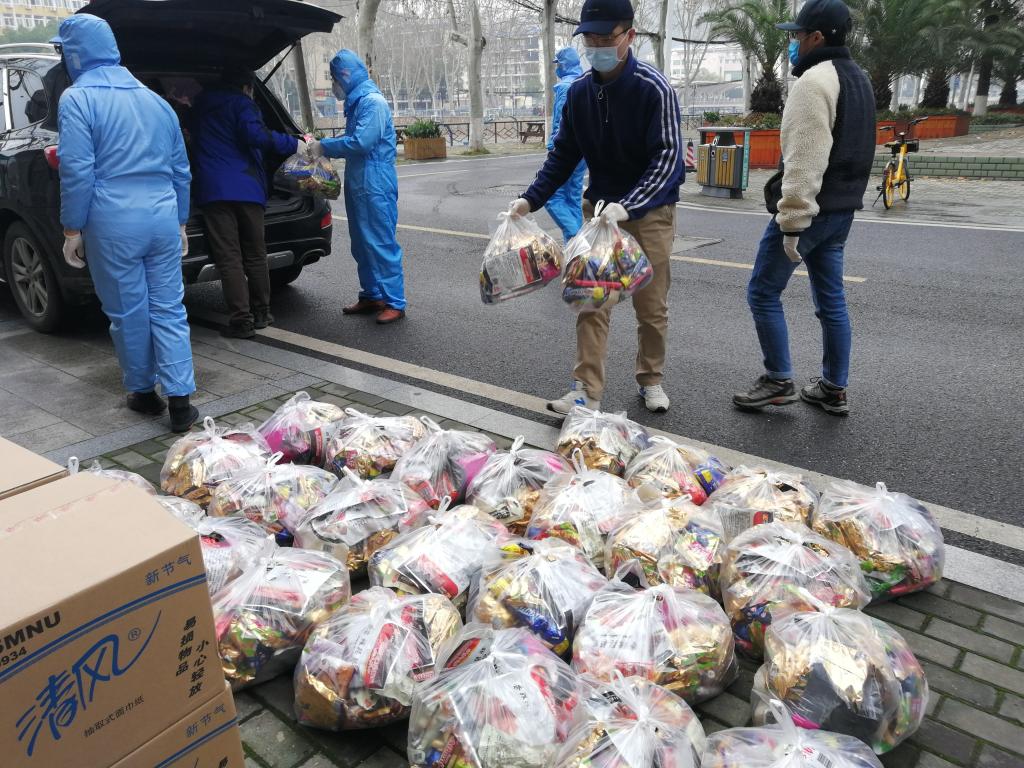 在武汉封城、物资难寻等重重困难中,公司XCSport迪力木拉提•亚力坤等4位新疆籍同学远在家乡,在老师、同学和员工们的共同努力下,为期5天内,联系到3家供货商的馕、牛奶、烤鸡腿、香肠、方便面、干果、抽纸巾等12种硬核援助物资,全部提供给了公司员工工作处,并委托学工处将物资分发给留校的同学们。26日下午,物资抵达公司,经学工处、保卫处和XCSport的老师们前期协调和有力组织下,留校员工临时党支部的同学积极配合,有序将物资分发到了每一位留校同学的手中。